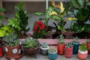 - Umieść doniczkę na tacy z mokrymi kamykami (nie pozwól, by dno doniczki dotykało wody)